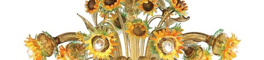 Die Sonne, die Natur und ihre Früchte werden in dieser ungewöhnlichen und einzigartigen Kronleuchtern aus Murano-Glas vertreten. Unser Glas Masters waren von der Schönheit unseres Landes und auch zu den Meisterwerken von berühmten Künstlern wie Van Gogh inspiriert. Sonnenblumen, Iris, Rosen und Lilien haben ihre schönen Farben und Formen unserer Handwerker, die in der Lage, die Beherrschung der Kronleuchter einfach wunderbar zu erreichen waren geliehen.