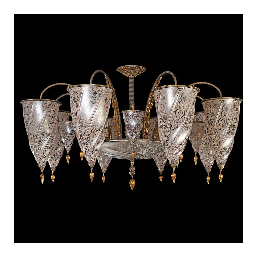 Damascus Murano Glas Kronleuchter 17 Lichter, mit Gold oder Platin Dekorationen 24 kt 20 kt in das Glas verschmolzen. Struktur der Messing Kronleuchter. Es kann in den verfügbaren Farben und der gewünschten Größe gewünscht werden.