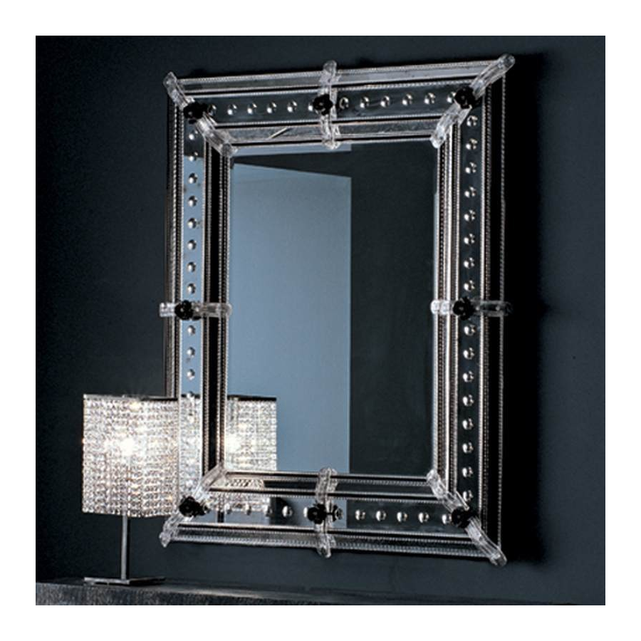 Moderner venezianischer Spiegel aus Muranoglas mit transparenten Quadraten.