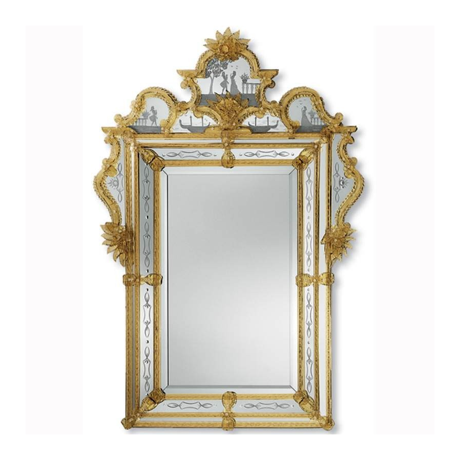 Spiegel aus Murano-Glas geätzt und antiqued Goldfarbe.