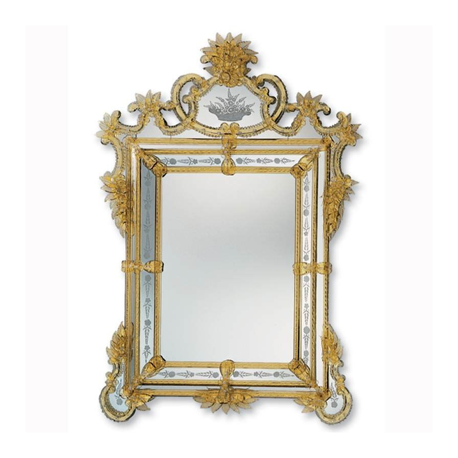 Venezianischer Spiegel mit Details aus Bernstein Murano Glas. Verpackung in Holzkiste.