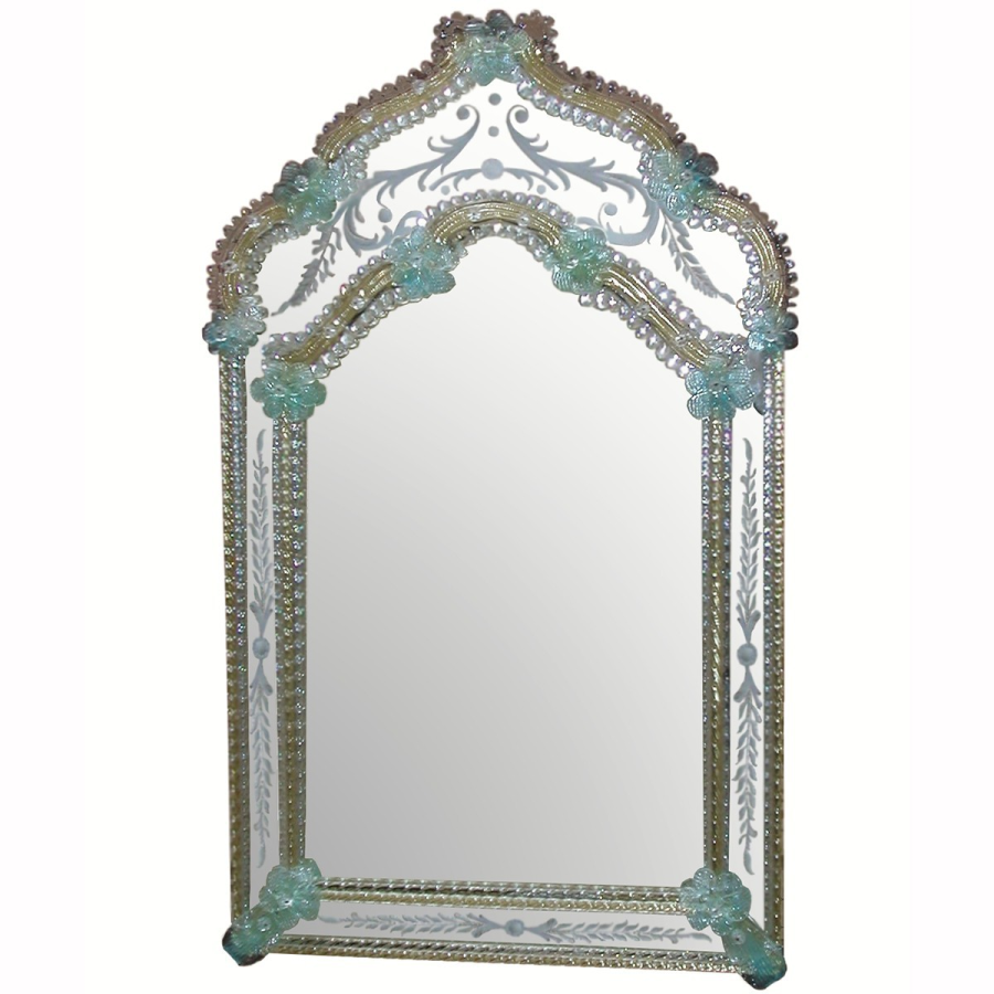 Gravierter und transparenter venezianischer Spiegel mit Pasta Blumen.