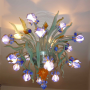 Kronleuchter aus Muranoglas, schlicht, aber elegant, mit Tassen in Form der Calla-Blume.