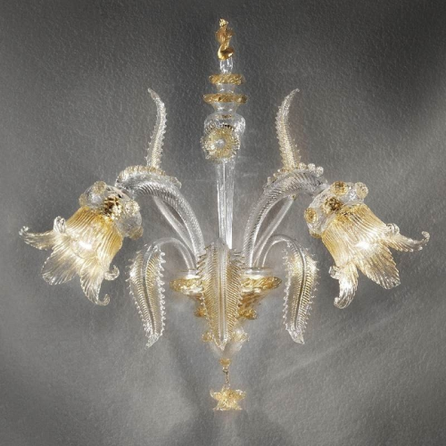 Klassische Murano Lüster in transparent 24 k Gold. Im Kern des Kronleuchters steht herrlichen Blumen und Blattgold.