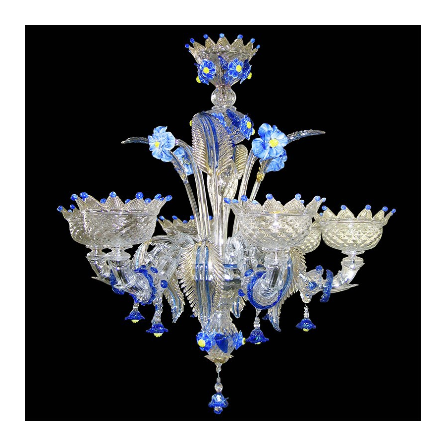 Schöne Kronleuchter aus Murano-Glas klar-blau