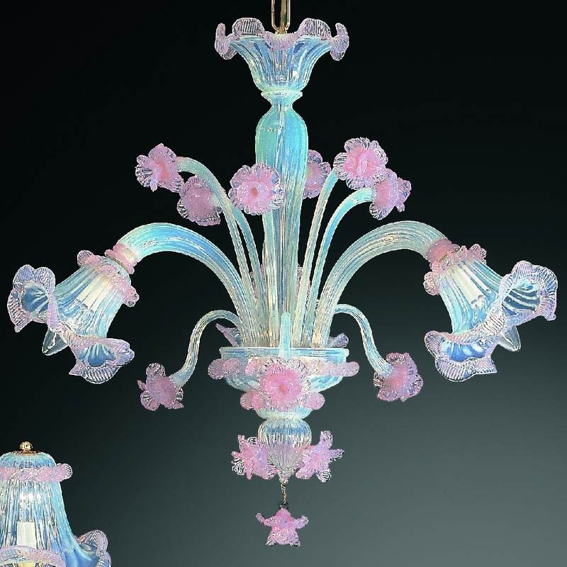 Muranoglas-Kronleuchter mit transparenten und zarten Farben.