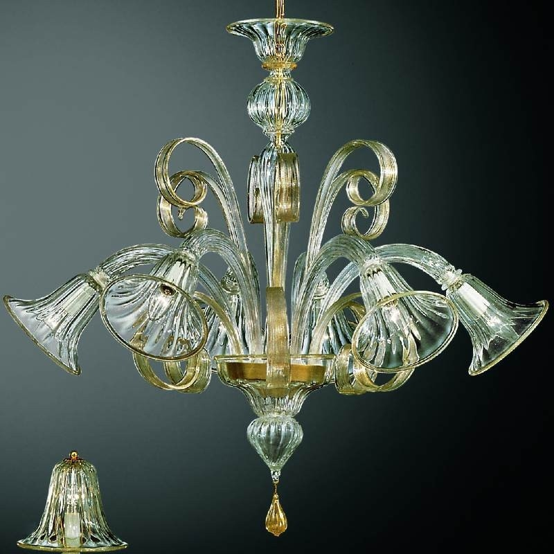 Klassische Murano Lüster in transparent 24 k Gold. Im Kern des Kronleuchters steht herrlichen Blumen und Blattgold.