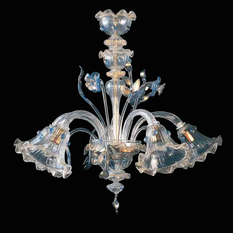 Schöne Kronleuchter aus Murano-Glas klar-blau