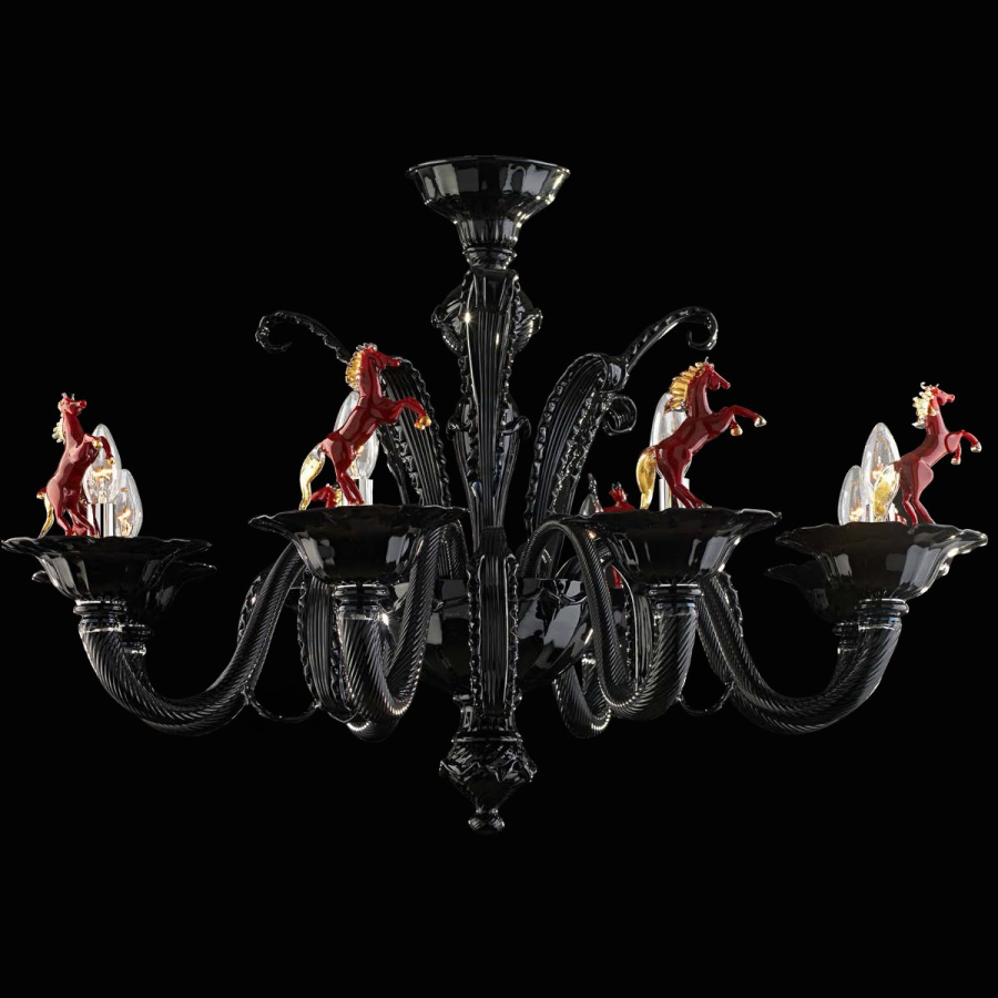 Cavallini – Kronleuchter aus schwarzem Muranoglas mit 6 Lichtern.