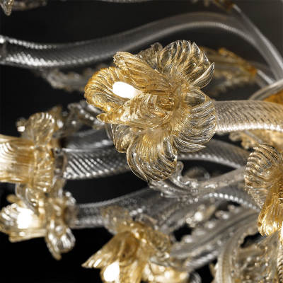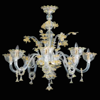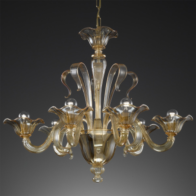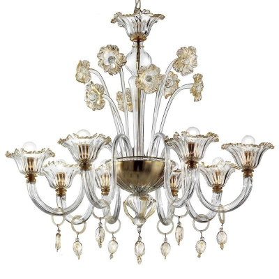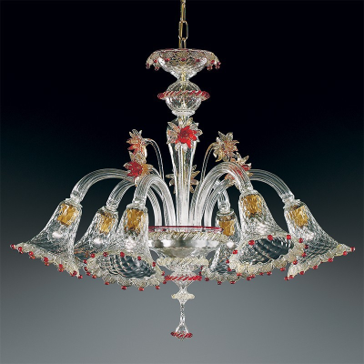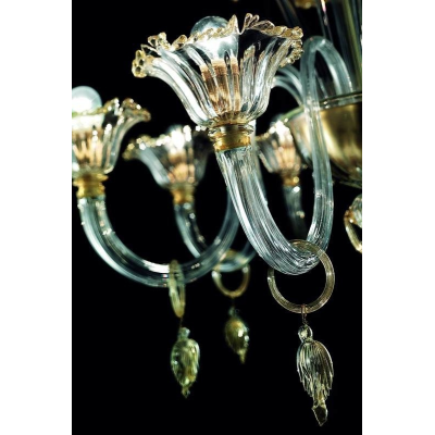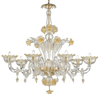 Kronenleuchter aus Murano Glas mit einen klassischen Look. Der Kronenleuchter wurde durch einen speziellen Vorgang entworfen um ein hochwertiges Meisterwerk zu erschaffen.