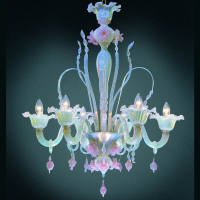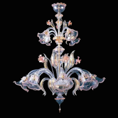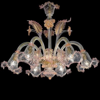 Klassische Murano-Kronleuchter aus transparentem rosa Glas.