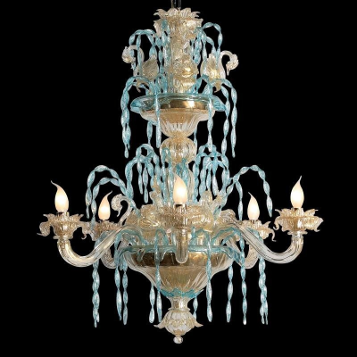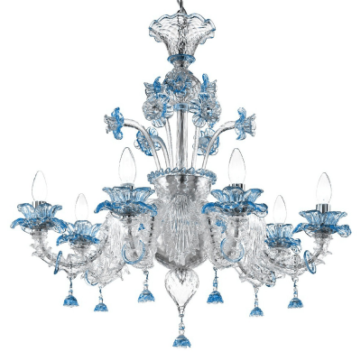 Schöne Kronleuchter aus Murano-Glas klar-blau