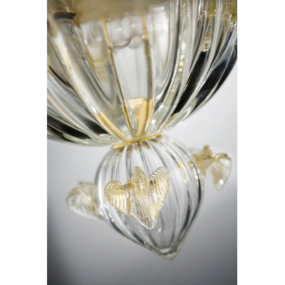 Ein Kronleuchter aus Murano-Glas mit Form und Farbe entschieden, mit einem Hauch von Eleganz und Raffinesse in den Details in Gold.