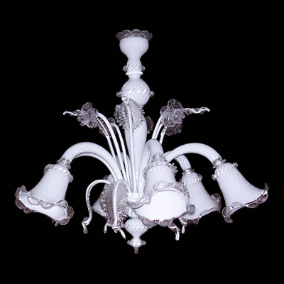 Kronleuchter aus Muranoglas, schlicht, aber elegant, mit Tassen in Form der Calla-Blume.