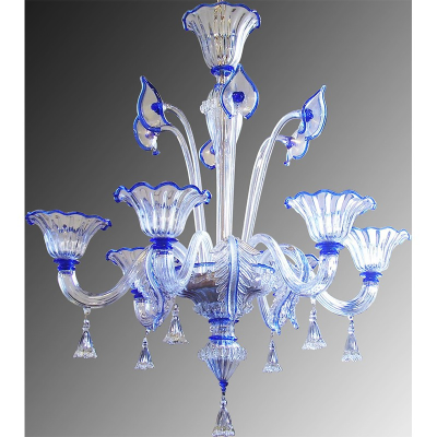 Murano 6 Leuchten 26/6 transparentem Glas mit blauen Details
