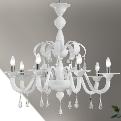 Großzügige Form, mäßig scharfe Linien für einen wunderschönen Murano-Kronleuchter. Handgefertigt von professionellen Glasmacher, ist es eigentlich ein schönes Element, das Ihre Art des Lebens lobt.