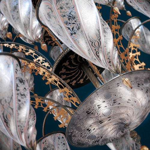 Rezzonico Fedra Kronleuchter aus Muranoglas, elegant wie eh und je.