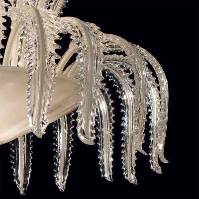 Deckenleuchte voller Persönlichkeit dank der exklusiven Verarbeitungstechnik aus Muranoglas, das Ergebnis von Studien zur Lichtbrechung, mit faszinierenden Effekten, intensiven Adern und stimmungsvollen Nuancen.