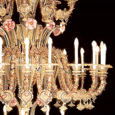 In jedem Kronleuchter gemacht, unsere Masters übertreffen die Erwartungen unserer Kunden. Ehrfürchtig Rezzonico Kronleuchter, ganz aus Muranoglas alle 24K Gold, der ultimative Luxus nach Hause zu schmücken.