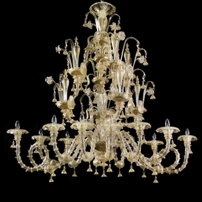 Klassisches Aussehen venezianischen Glas-Kronleuchter beeindruckt durch seine große Anzahl von Armen perfekt verteilt und seiner polierten Akzenten und seine herrlich transparent Schatten.