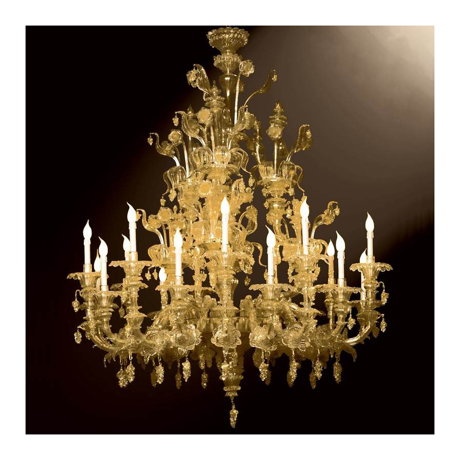In jedem Kronleuchter gemacht, unsere Masters übertreffen die Erwartungen unserer Kunden. Ehrfürchtig Rezzonico Kronleuchter, ganz aus Muranoglas alle 24K Gold, der ultimative Luxus nach Hause zu schmücken.