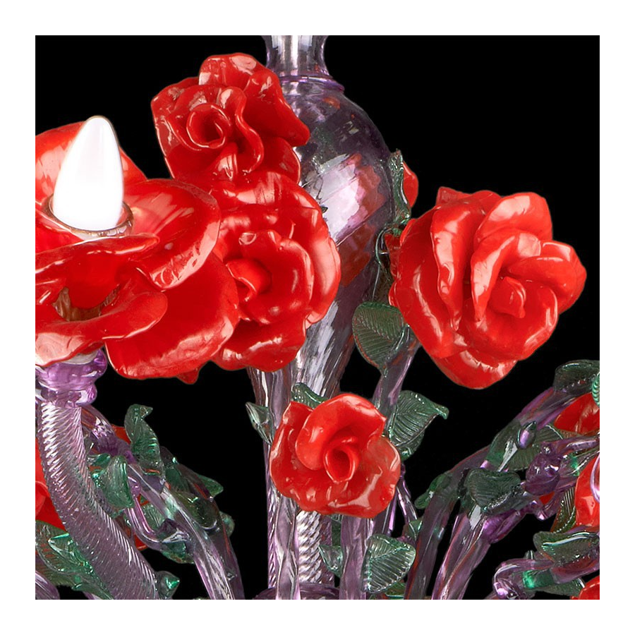 Dieser venezianischen Glas-Kronleuchter verfügt über eine hochmoderne freie Anordnung der Formen. Es ist mit tiefen und lebendigen Blütenformen geschmückt.
