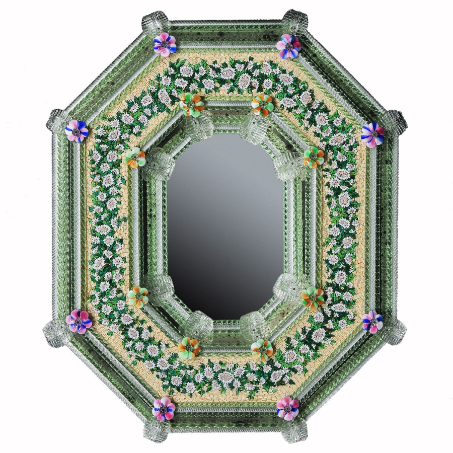 Venezianischer achteckiger Spiegel mit Pasta und Mosaikblumen. Verpackung in Holzkiste.