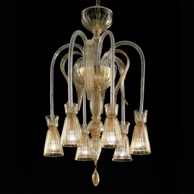 Dies ist ein klassisches Beispiel dafür, wie ein Kronleuchter kaufen aus Murano-Glas kann so gestaltet werden unverwechselbare Innenarchitektur angepasst werden. Die einfachen, aber sehr harmonischen Formen in freier Anordnung Stil angezeigt bringen die venezianische Atmosphäre in Ihr Wohnzimmer. Das auffälligste Merkmal ist die warme Ausstrahlung und all die kleinen Details, die mit größter Aufmerksamkeit und Liebe und Sorgfalt gefertigt wurden.