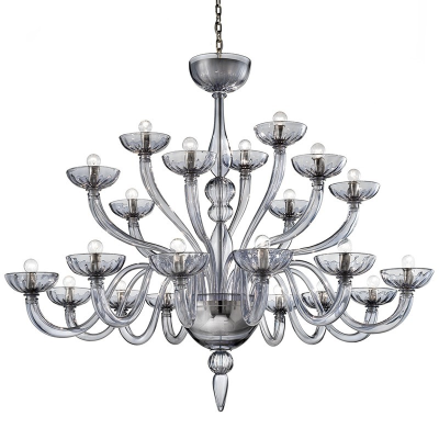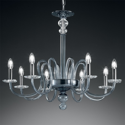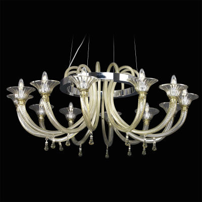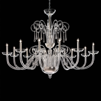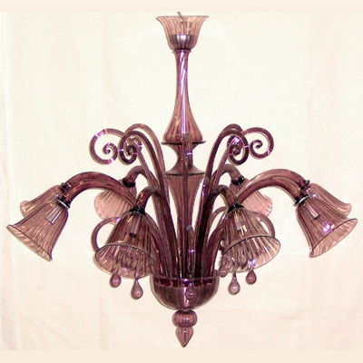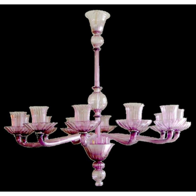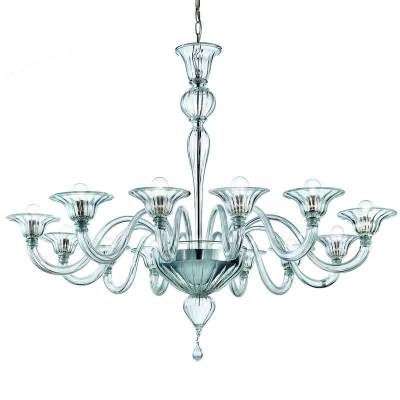 Ein Kronleuchter aus Muranoglas mit klassischen und einfachen Formen.