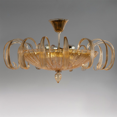 Glatte Kurven und warme Farben in dieser einfachen, aber wunderschönen Kronleuchter aus Murano-Glas. Handgemachte mit authentischen Materialien und hohe Qualität.