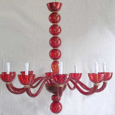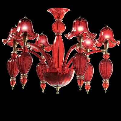 Dieser leuchtend roten venezianischen Glas-Kronleuchter ist ein sehr treuer Begleiter für Ihr Zuhause. Sie fügt hinzu, Glamour und authentischen venezianischen Aussehen zu Ihrem Platz.