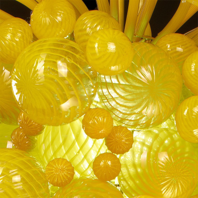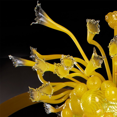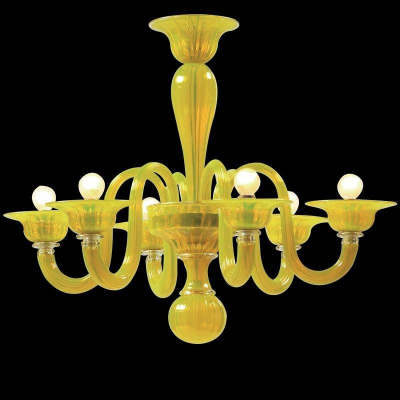 Atemberaubende Murano-Glas-Kronleuchter mit runden Leuchten konzipiert, Es passt sich perfekt an mittelgroßen Zimmer und beleuchtet den Raum schön. Murano-Glas gelbe Flüssigkeit