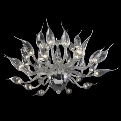 Nur über eines der modernsten und komplexen venezianischen Kronleuchter aus Glas. Mit Blume Formen, runde Blasen und gebogene und lange Blatt Strukturen.