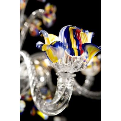 Bemerkenswert venezianischen Glas-Kronleuchter mit floralen Ornamenten. Die Silhouette des Leuchters ist transparent, während die vielen Blumen bunt sind.