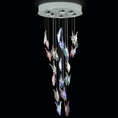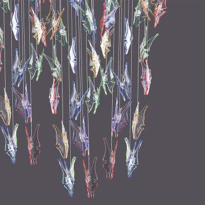 Ein moderner Kronleuchter aus Muranoglas mit Vogelfeder Formen.