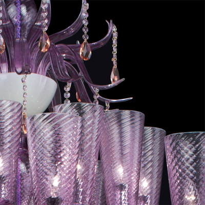 Moderne Murano-Kronleuchter in zarten Farben.