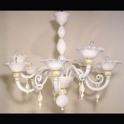 Weiss Milch - Murano glas Kronleuchtern. Gemacht in Murano-Glas weich fast wie Milch mit 24K Goldordnung