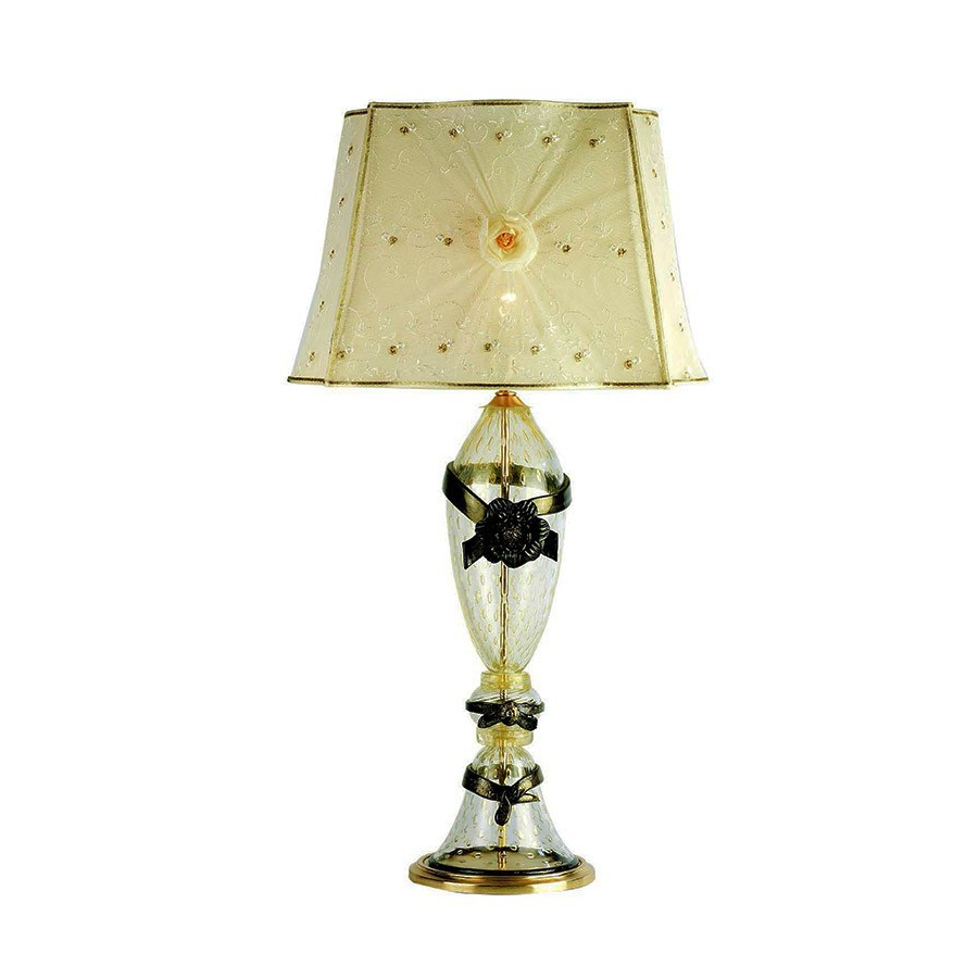 Tischleuchte aus Murano-Glas in Gold mit Bernstein Gold Dekoration. Stoffschirm. Abmessungen und Farben auf Anfrage.
