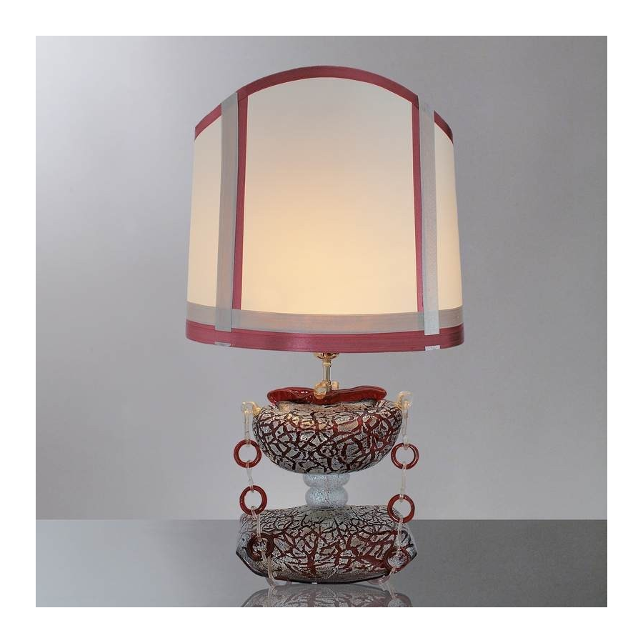 Tischleuchte aus Murano-Glas Rote / Gold. Stoffschirm. Abmessungen und Farben auf Anfrage.