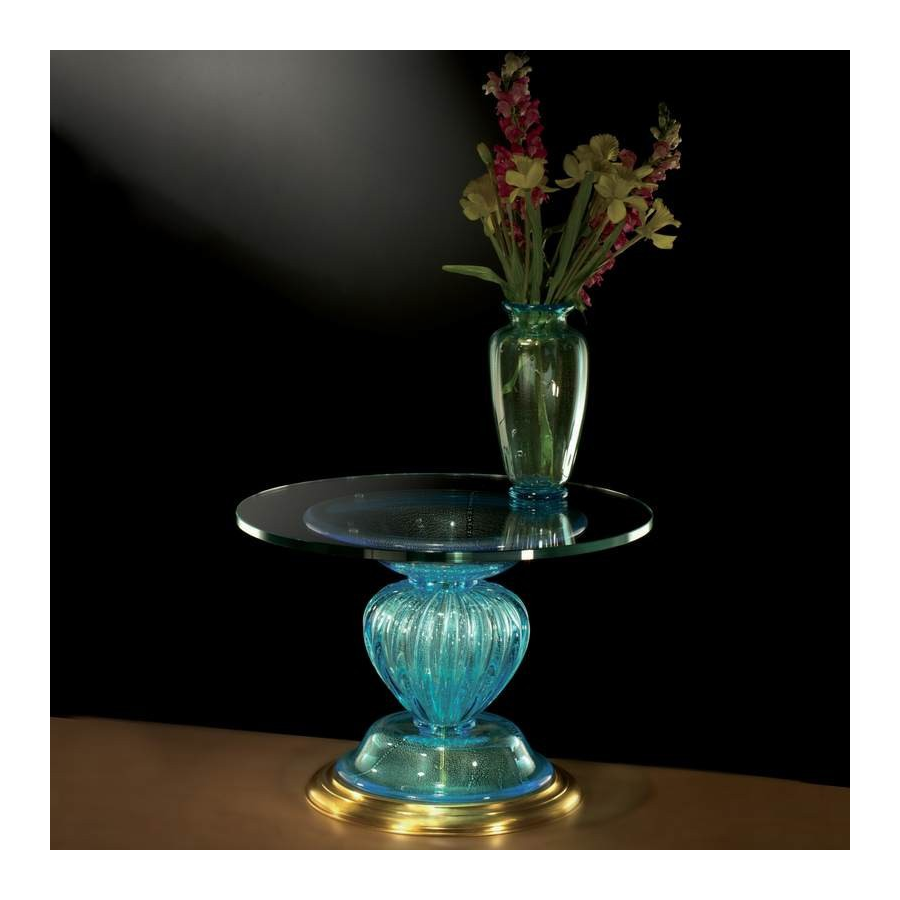 Tischleuchte aus Murano-Glas geriffelte Himmel blau. Stoffschirm. Abmessungen und Farben auf Anfrage.