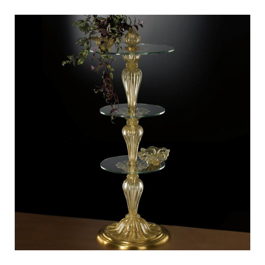 Spalte in Murano-Glas gerippt mit Regalen, alles Gold getaucht.
