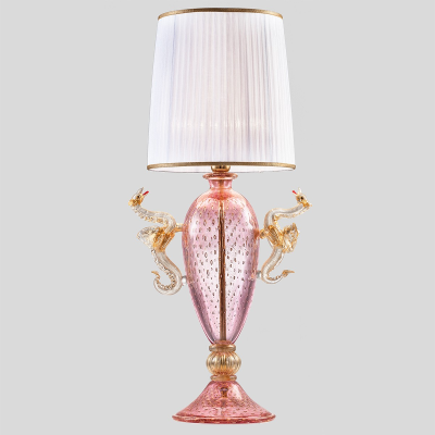 Tischleuchte aus Murano-Glas alle weiß. Stoffschirm. Abmessungen und Farben auf Anfrage.