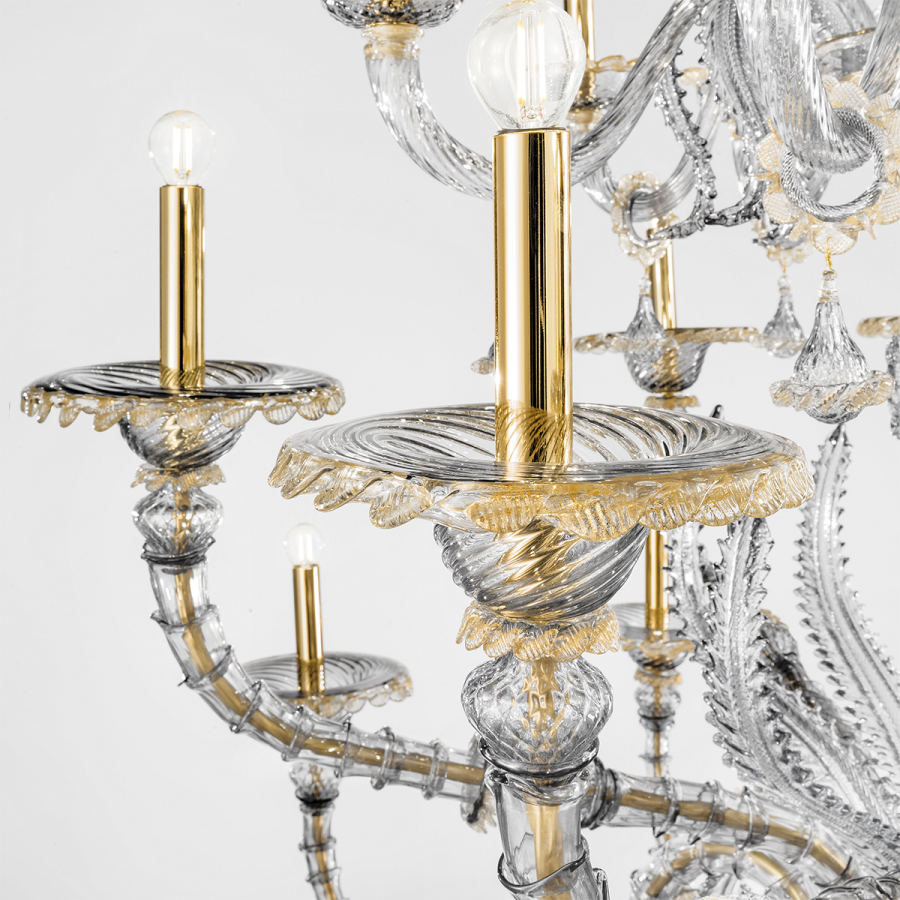 Nicosia Murano Glas Kronleuchter 17 Lichter, mit Gold oder Platin Dekorationen 24 kt 20 kt in das Glas verschmolzen. Struktur der Messing Kronleuchter. Es kann in den verfügbaren Farben und der gewünschten Größe gewünscht werden.