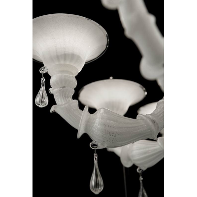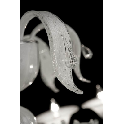 Dieser venezianischen Glas-Kronleuchter ist alles über Details und elegantem Stil und von den anmutigen Blumen in den langen und geschwungenen Bügeln.