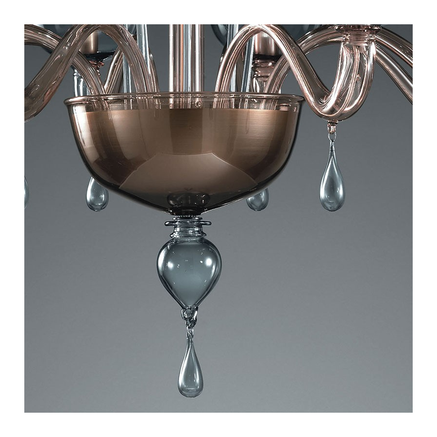 Amelie – Tischleuchte aus bronzefarbenem Muranoglas mit Goldverzierungen. Lampenschirm aus Stoff.