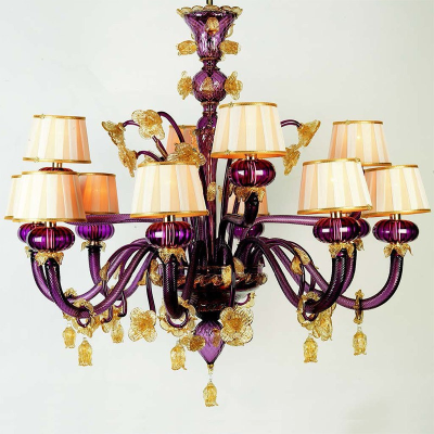 Tischleuchte aus Murano-Glas Rote / Gold. Stoffschirm. Abmessungen und Farben auf Anfrage.