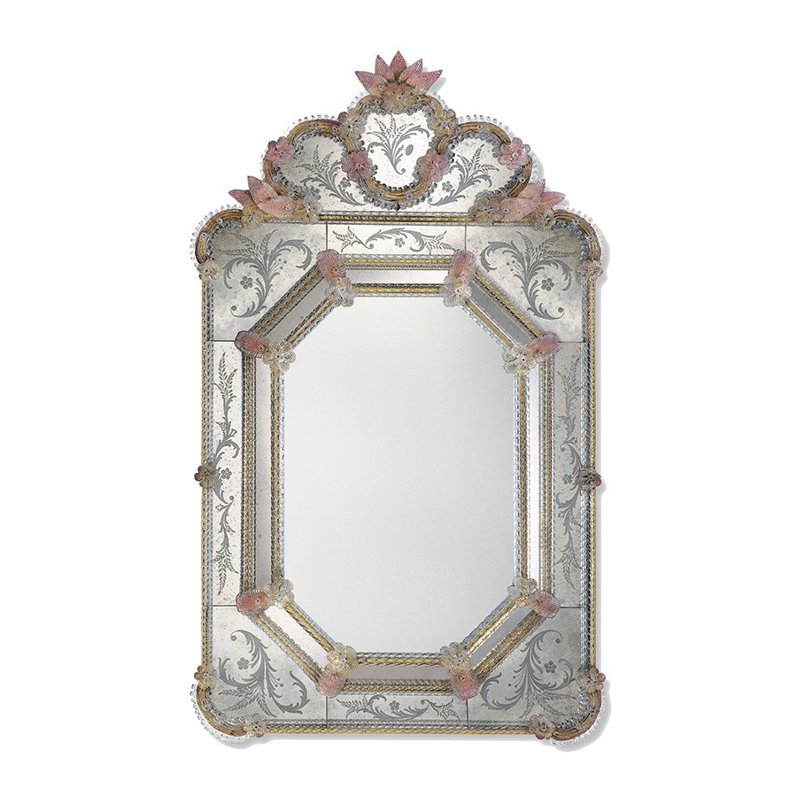Iris Kleine – Tischlampe und Vase aus Muranoglas. Bunte Irisblüten.