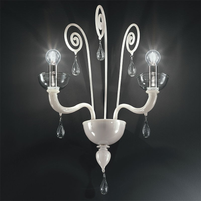 Tischleuchte aus Murano-Glas alle weiß. Stoffschirm. Abmessungen und Farben auf Anfrage.