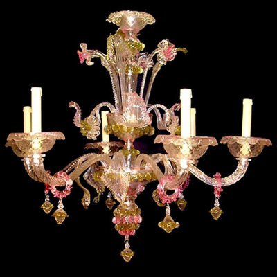 Sanfte Kurven und Farben leicht, aber fest. Die Form dieser Kronleuchter im alten venezianischen Stil ist sehr empfindlich mit seinem großen gebogenen Armen.