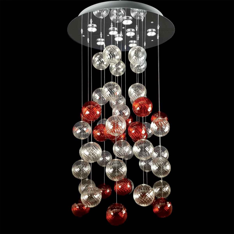 Murano glas Kronleuchter mit Glasscheiben in diesem Globus. Verfügbar Glas schwarz oder weiß. Chromrahmen.
